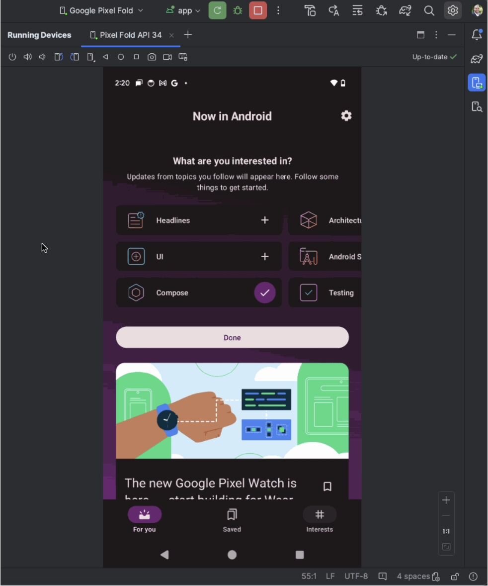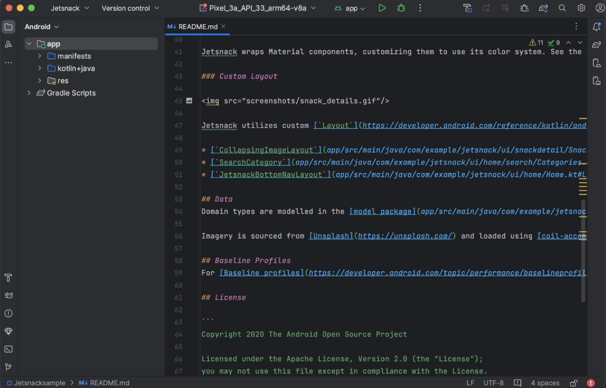 别的,民间 Android Studio 入止了分外更新,加添了松凑模式、垂曲以及程度支解和 macOS 版原的名目选项卡。
