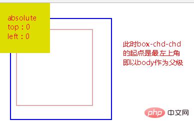 图二:对box-chd-chd设置position:absolute 并设置 top:0, left:0 可以看到它从body作为父级,会以最左上角作为起点