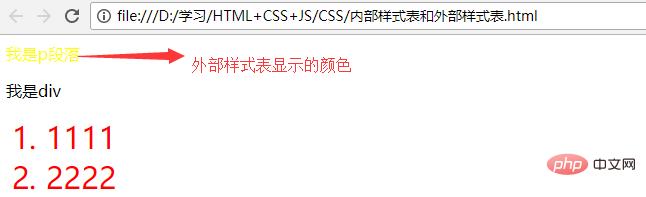 结论:内部样式表和外部样式表使用就近原则,即谁写在下面以谁为准。