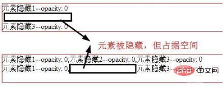 <div>元素隐藏1--opacity: 0,<span>元素隐藏2--opacity: 0</span>,元素隐藏3--opacity: 0</div>