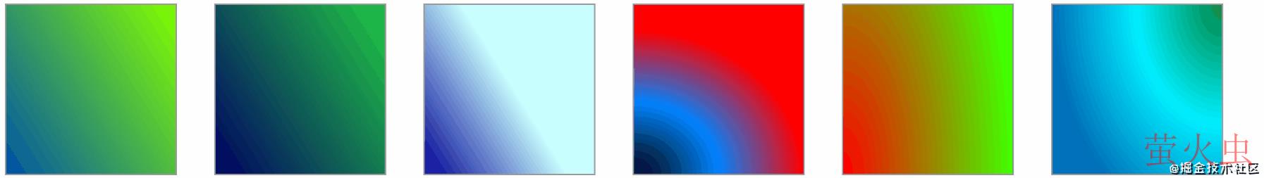 首先,我们使用线性渐变或者径向渐变,随意创建几个渐变图案,如下所示: