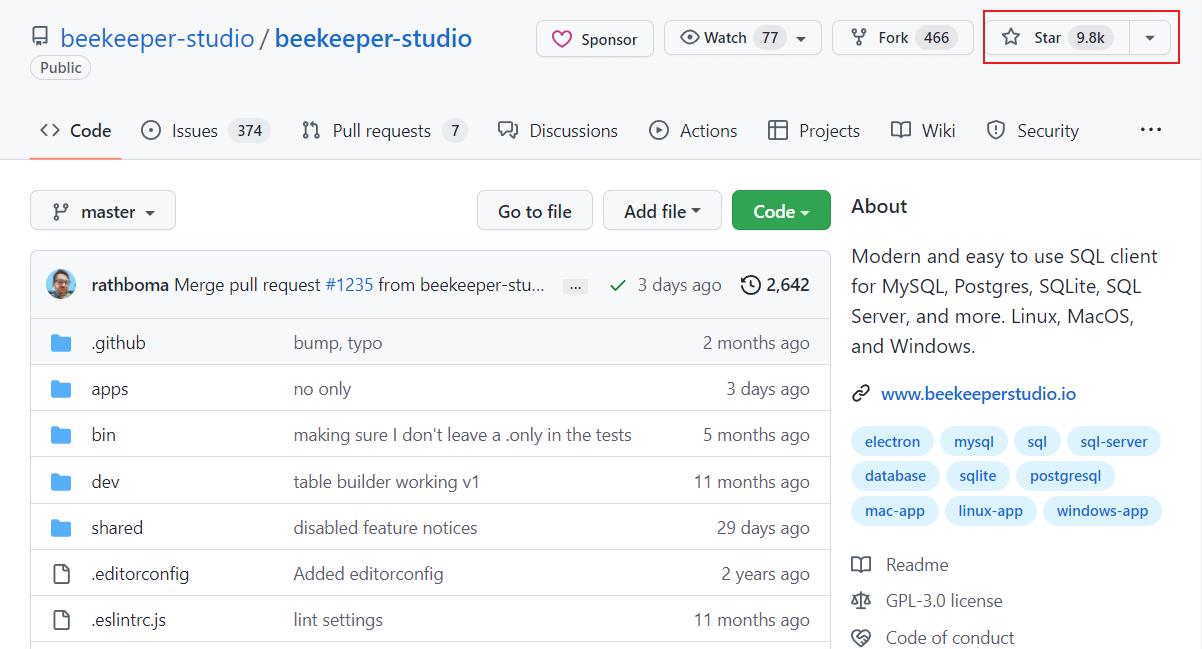 项目地址 https://github.com/beekeeper-studio/beekeeper-studio/