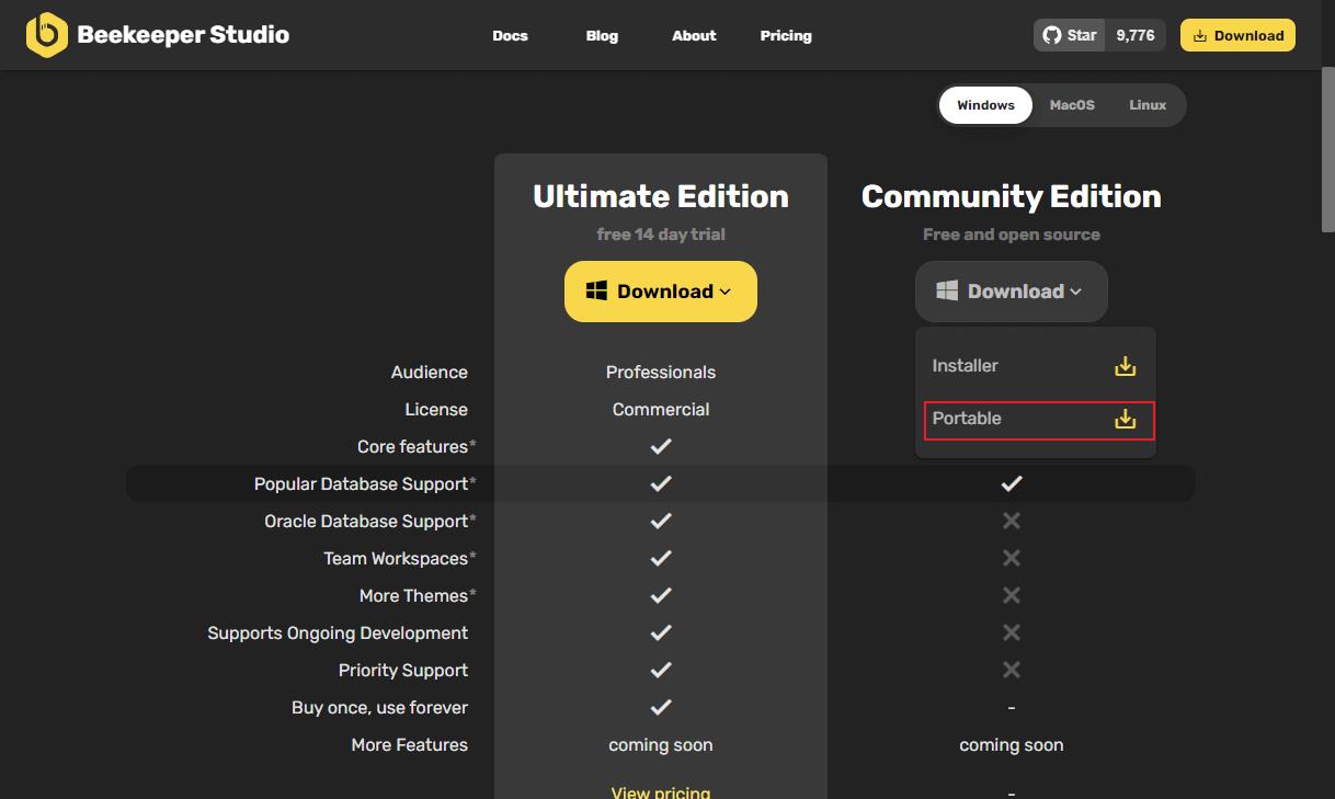 Beekeeper Studio 有免费的社区版可以使用,不想安装的小伙伴可以下载便携版,下载地址: