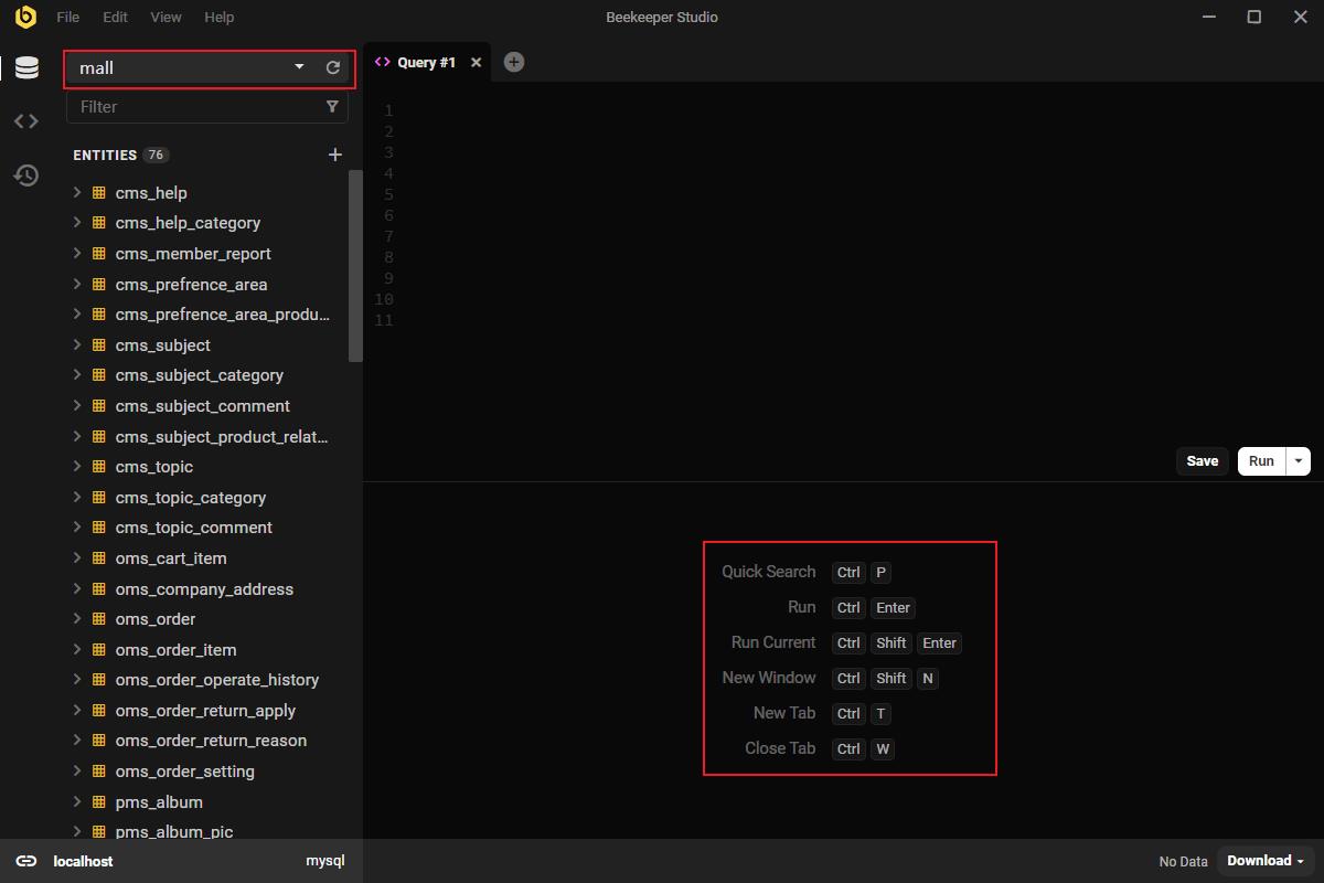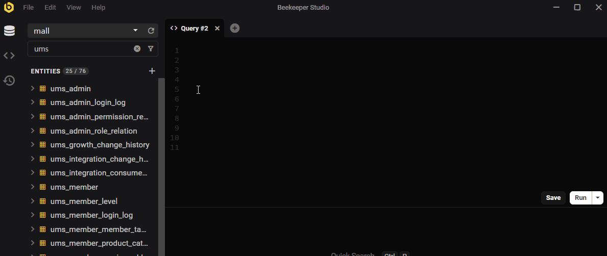 在使用Beekeeper Studio的编辑器写SQL的时候,支持SQL语法高亮,对数据库表和字段都可以自动提示;