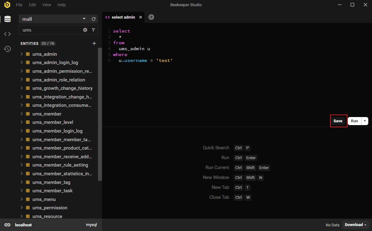 我们还可以通过保存按钮来保存需要的SQL语句;