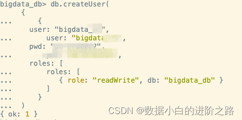 db.createUser({user:"root",pwd:"1两3456",roles:[{role:'root',db:'admin'}]})
