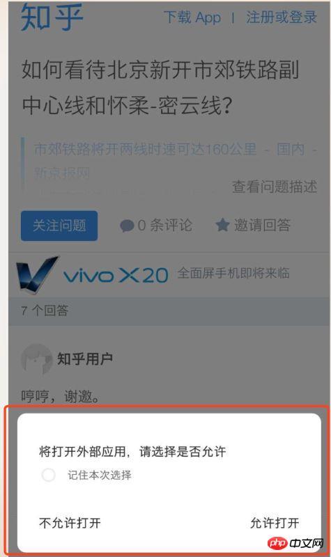 他的逻辑是先提示我是否打开手机中的知乎APP(浏览器的机制询问用户操作许可),然后接着又弹出下载的提示。