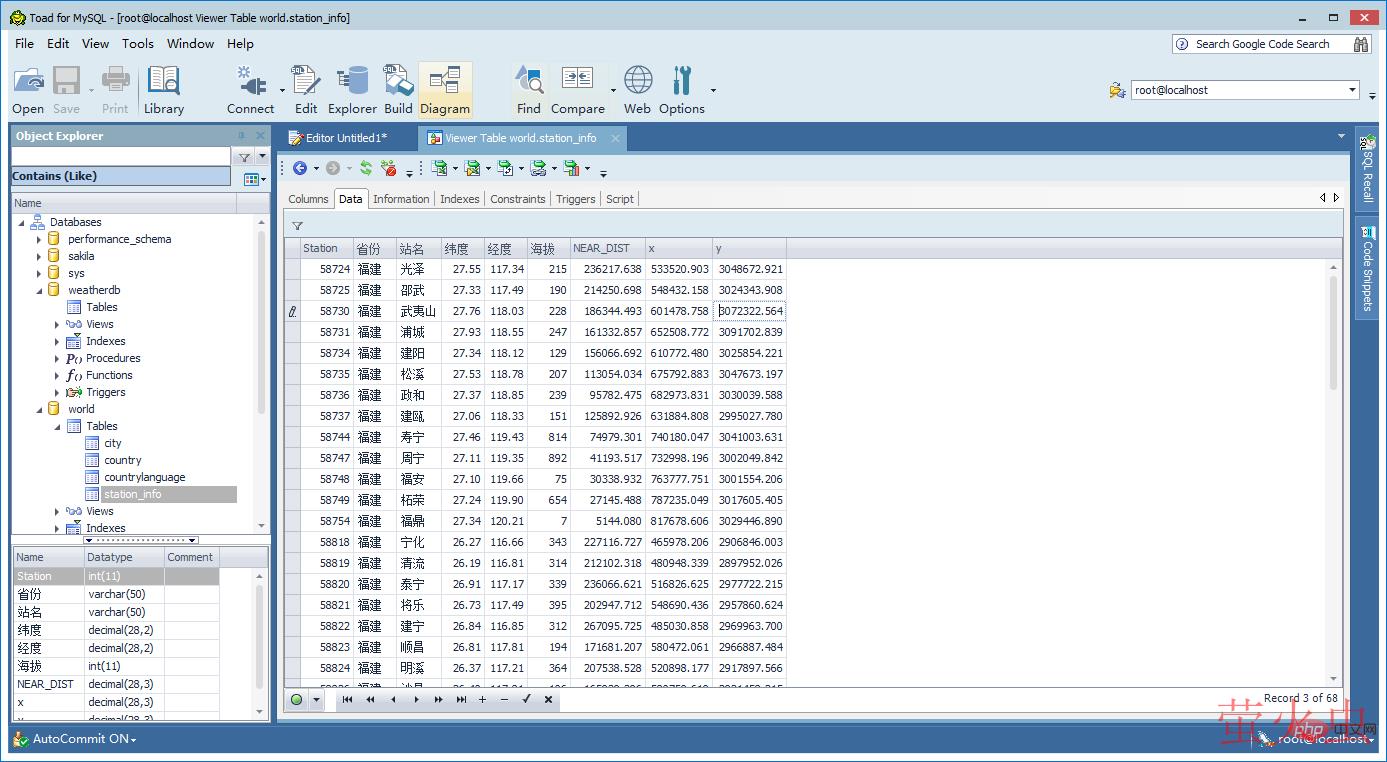 在toad for mysql新建一个editor(pl/sql的查询语句和命令语句是要新建不同的窗口的,没想到toad for mysql是不用的 直接一个editor窗口搞定)。输入