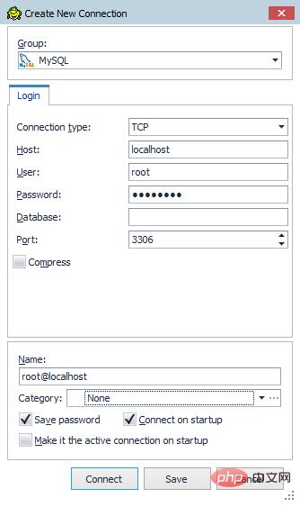 下次启动弹出连接窗口,输入用户名root 密码:自己安装MySQL时设置的