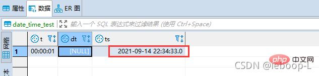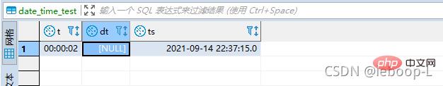 insert date_time_test(t) values('00:00:01');登录后复制查看数据,如图: