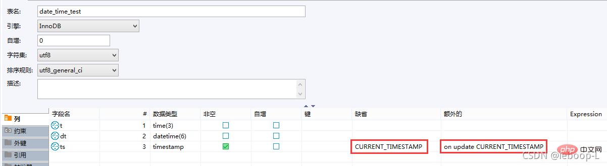 上面date_time_test表ts列是TIMESTAMP,一旦创建后,我们发现ts列默认值为当前TIMESTAMP,而且可自动更新为当前时间戳,如图: