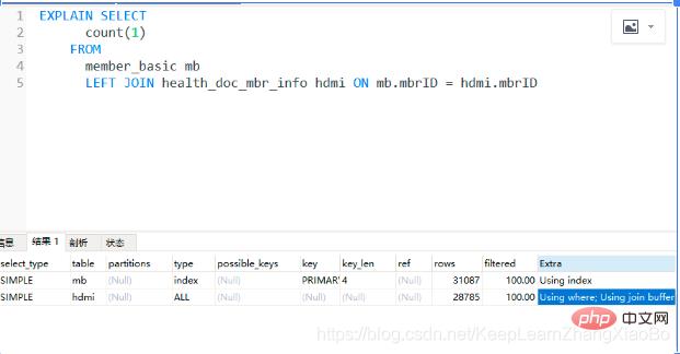 1、EXPLAIN 命令对 SELECT 语句进行分析