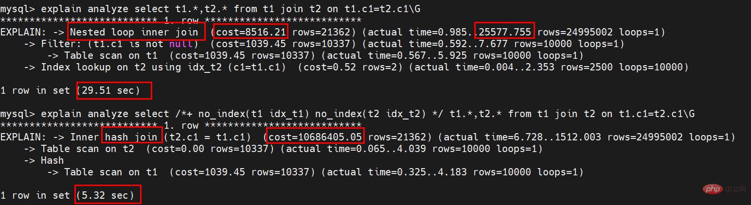 以上就是干涉MySQL优化器使用hash join的方法的详细内容,转载自php中文网