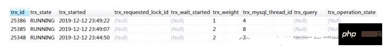 select * from information_schema.INNODB_TRX; --当前运行的所有事务﹐还有具体的语句