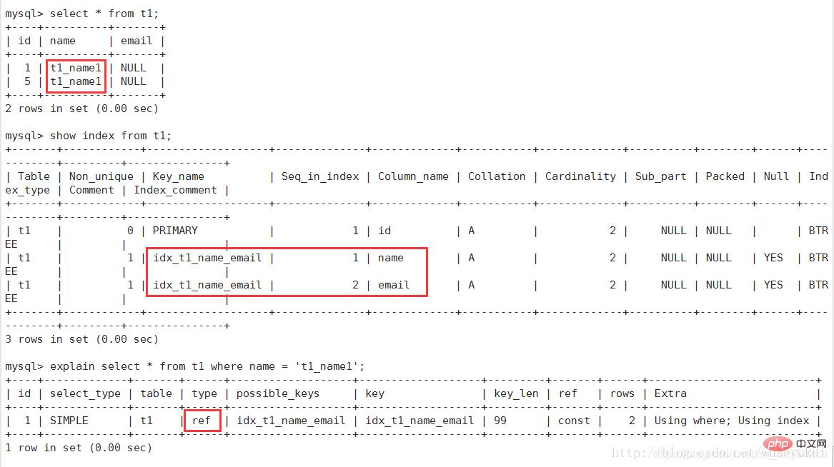 4、ref:非唯一性索引扫描,返回匹配某个单独值的所有行。本质是也是一种索引访问,它返回所有匹配某个单独值的行,然而他可能会找到多个符合条件的行,所以它应该属于查找和扫描的混合体
