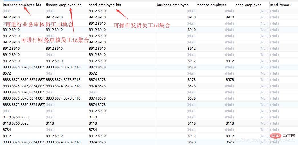 员工登录系统,我们可以得到其对应的id,而我们需要将其id去对应的字段查找,是否在业务审核,财务审核或发货人的集合中。这时候,SQL该怎么改?