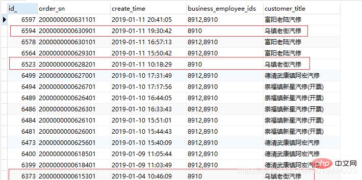 上面结果截图中,框出的三条订单,id为6594,6523,6373是只有员工编号为8910能处理的,我们将上面的SQL员工编号改为8912,则此三条订单应该是不在结果范围内的, 从而验证使用此函数查询是否可行。
