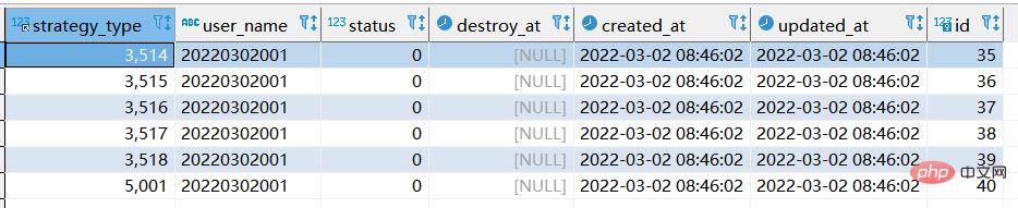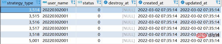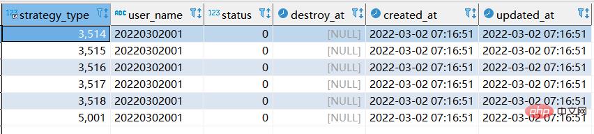 我们将strategy_type & user_name 联合唯一索引删除,且删除20220302001用户所有数据。最终表格结构如下: