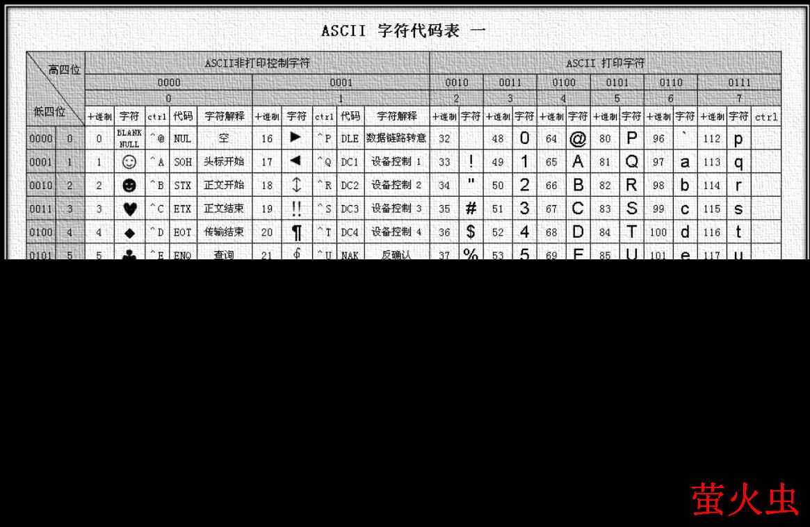 附上ASCII码表: