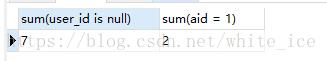 mysql > select sum(user_id is null),sum(aid = 1) from user_auth; 结果如下: