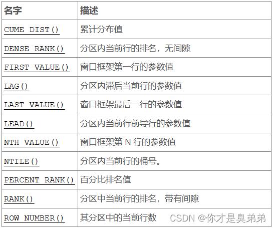 MySQL 官方文档:https://dev.mysql.com/doc/refman/8.0/en/window-functions.html