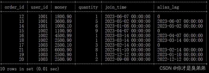 lag(join_time, 1, 0) over(partition by user_id order by join_time desc) as alias_lag