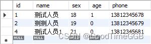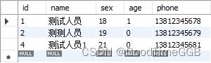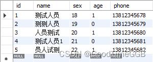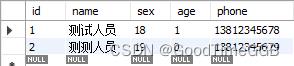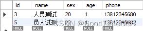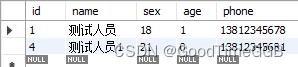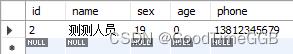insert into people values(2,'测测人员',19,0,'13812345679');