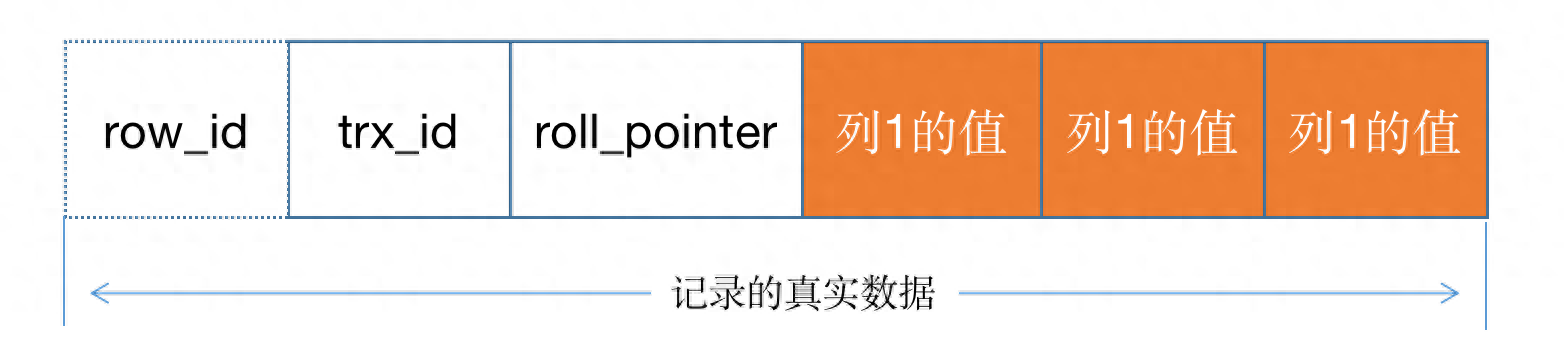 纪录实真数据除了了记载咱们自界说的列的数据中,Mysql借会为每一个记载默许加添一些列(潜伏列)