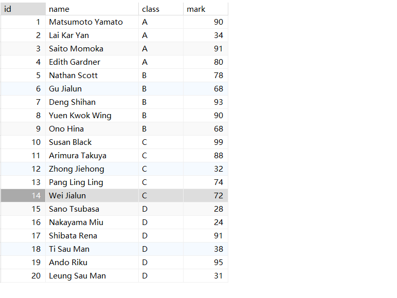 为了演示 FORCE INDEX 的事例,咱们将应用上面的表组织以及数据,闭于一弛分数表marks。