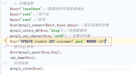 $con=mysqli_connect(‘数据库所在服务器地址’,’用户名’,’密码’);