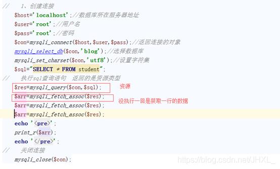 mysqli_fetch_assoc(获取的资源)拿到的是一个关联数组,而且每调用一次是获取一行的数据。