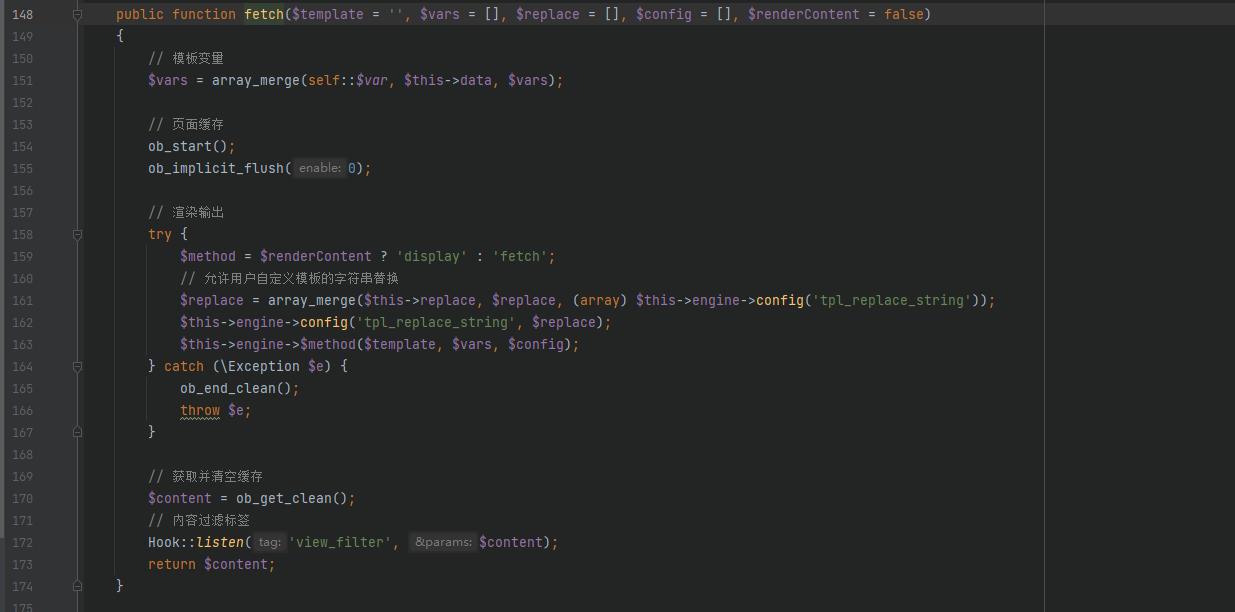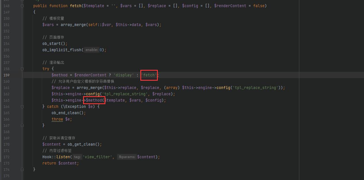 fetch 前面的方法 主要是加载模板输出。这里的method值可以追溯到view\driver\Think.php 视图引擎