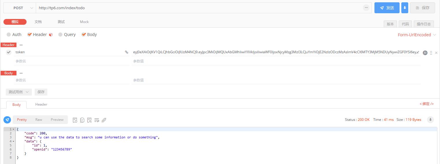 四、在ThinkPHP6中使用JWT+中间件生成验证Token