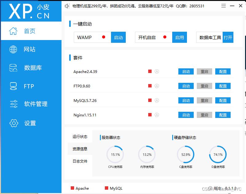 以上是官方宣传语,翻译成普通话就是,傻瓜式操作(鼠标点点点),可使用它搭建php网站运行环境,方便后续web靶场和相关漏洞环境的搭建。