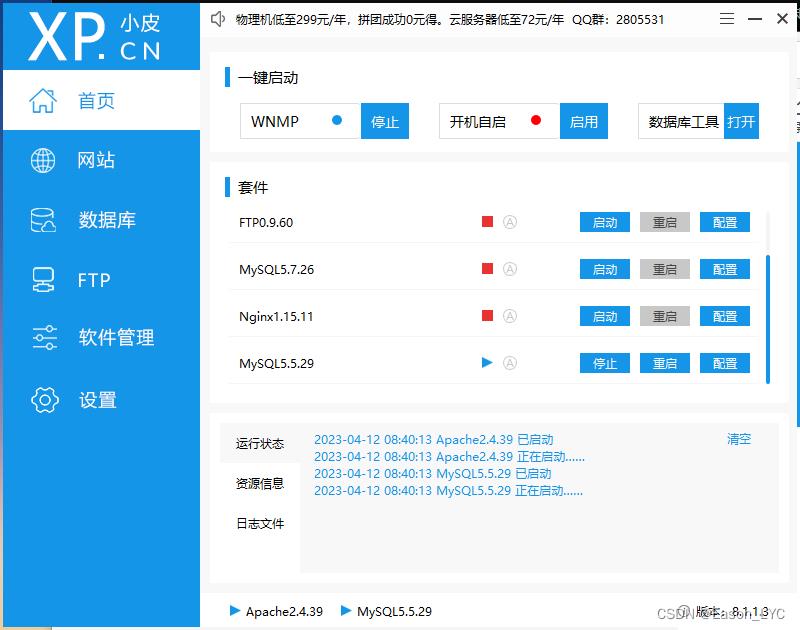 PHPStudy为服务器环境提供极佳配置的解决方案支持CentOS、Ubuntu、Debian、Fedora、deepin,Web端管理,QQ群及论坛技术支持一键创建网站、FTP、数据库、SSL;安全管理,计划任务,文件管理,PHP多版本共存及切换;自带LNMP与LAMP