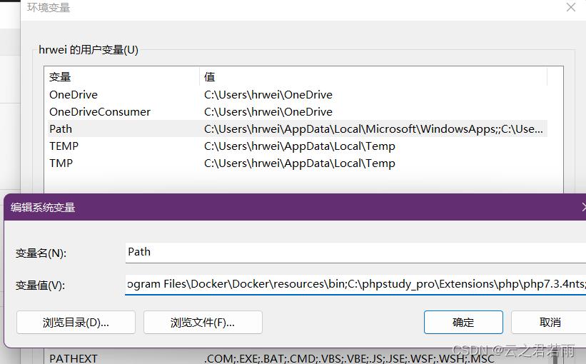在系统的“环境变量”中设置PHP的环境变量,使系统能够正确识别php命令。例如,在系统变量的PATH中加入路径“C:\PHPStudy\php\php-7.4.9-nts-Win32-vc15-x64”,其中根据实际安装的php版本进行选择。