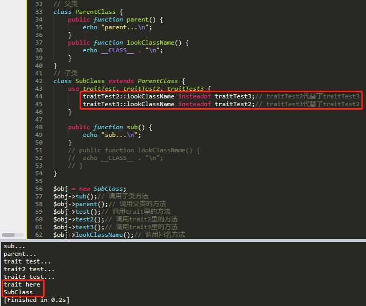 traitTest2::lookClassName insteadof traitTest;// traitTest2代替了traitTest