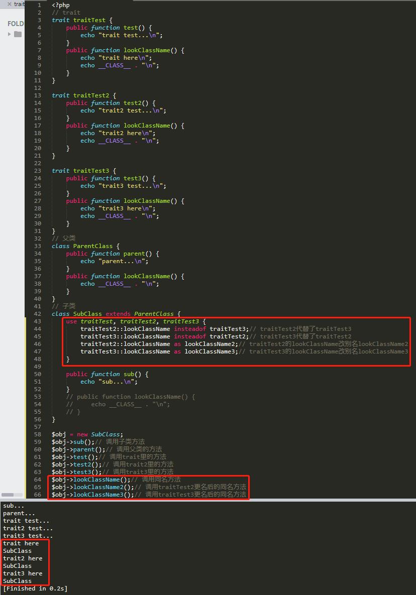 如图,当traitTest2和traitTest3互相代替后,直接输出了traitTest的内容。