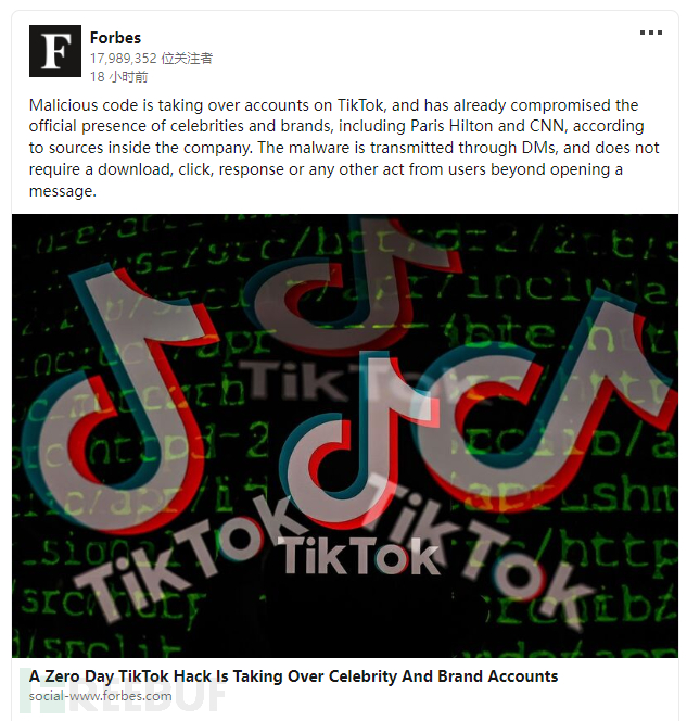 参考起原:https://www.bleepingcomputer.com/news/security/tiktok-fixes-zero-day-bug-used-to-hijack-high-profile-accounts/