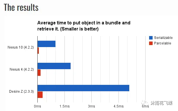 数据来自parcelable-vs-serializable,实行成果对于比Parcelable的效率比Serializable快10倍以上。