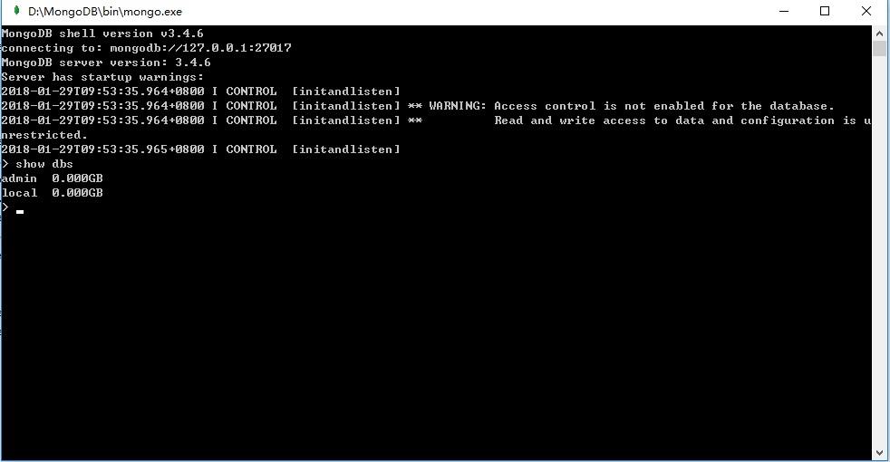 执行启动操作后,mongodb在输出一些必要信息后不会输出任何信息,之后就等待连接的建立,当连接被建立后,就会开始打印日志信息。