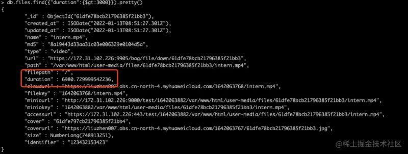 db.files.find({"duration":{$gt:3000}}).pretty()