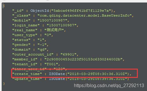 上面的圈是查询的条件对应数据库中的数据是2018-03-29T08:30:36.310Z 如下图,但是在java中你写2018-03-29 08:30:36这个时间肯定查不到数据