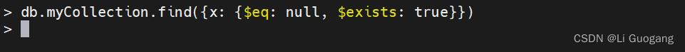 如果仅想匹配键值为 null 的文档,则需要检查该键的值是否为 null,并且通过 "$exists"条件确认该键已存在。