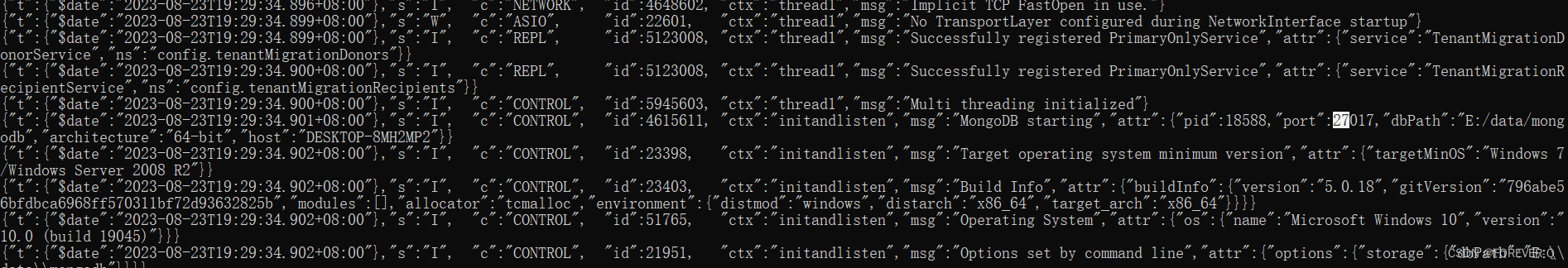 mongod --dbpath=E:\data\mongodb