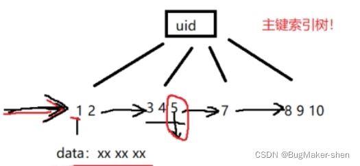 select * from student where uid<5;如果是这样查询,这表示范围查询,就直接在有序链表中遍历搜索就可以了,直到遍历到第一个不小于5的key结束遍历