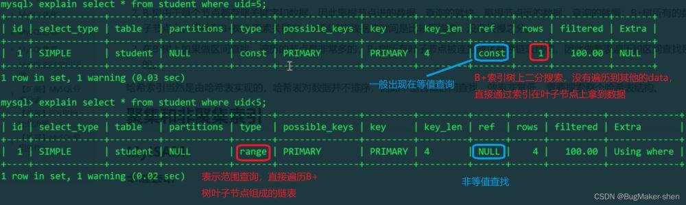 select * from student where uid=5;如果是这样查询,这表示等值查询,在索引树上进行二分查找即可