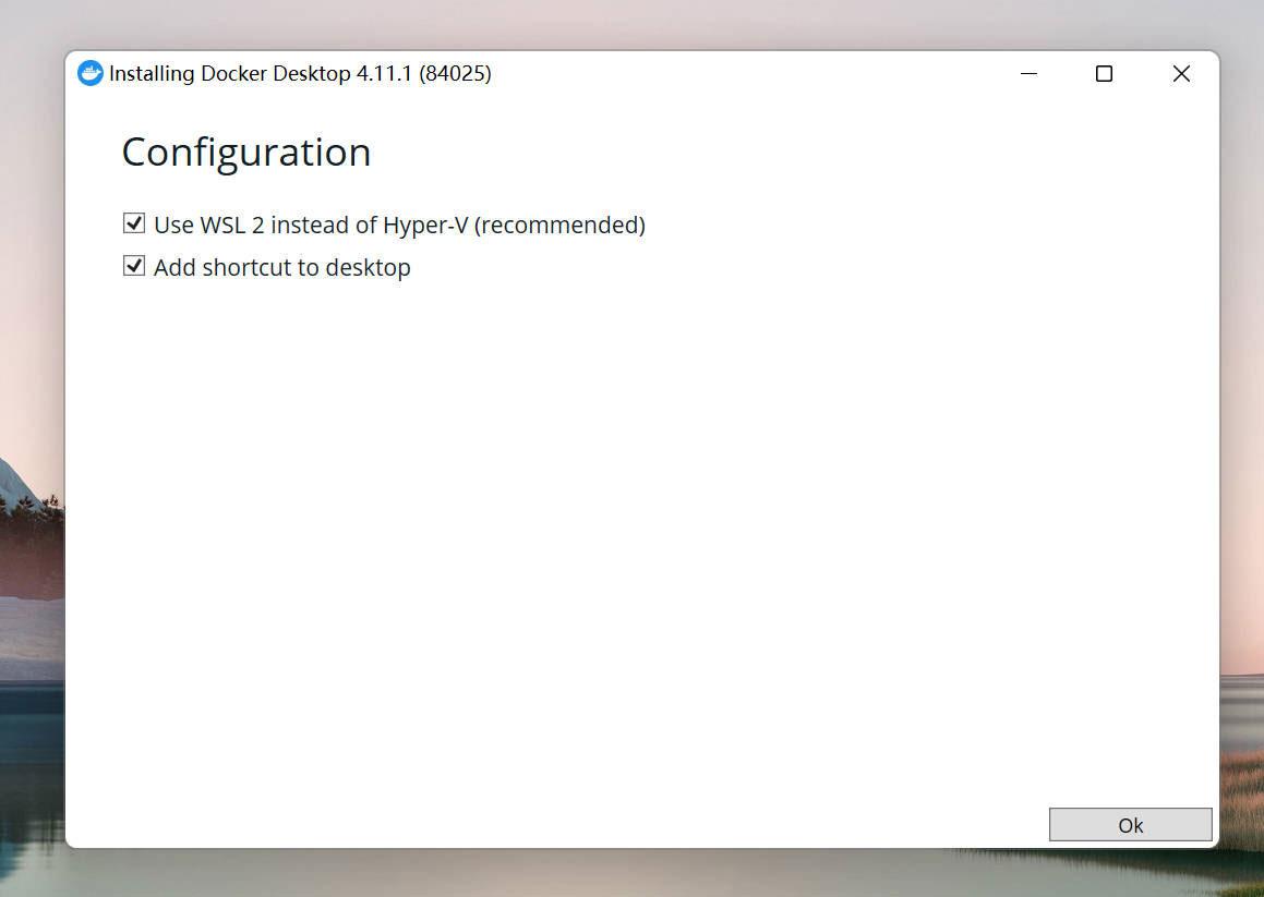 默认会勾选安装WSL 2(WSL是windows推出的可让开发人员不需要安装虚拟机或者设置双系统启动,就可以原生支持运行GNU/Linux的系统环境,简称WSL子系统),按照默认设置进行安装。