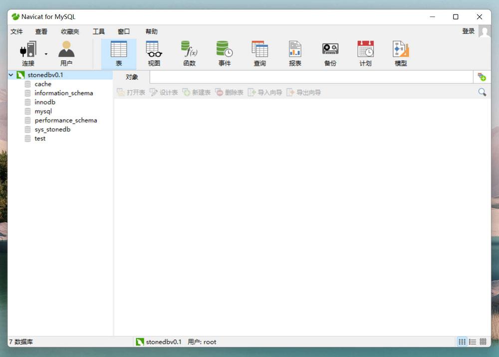 既然StoneDB数据库已经开始运行,就可以连接数据库进行操作了。连接的方法很多,可以进入容器用命令行进行操作,也可以使用所有MySQL兼容的客户端进行连接。我这里使用Navicat进行连接。