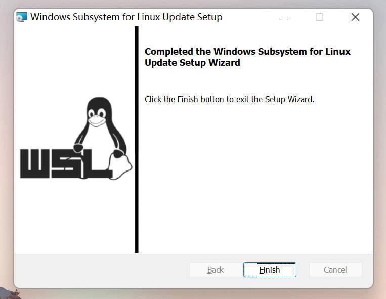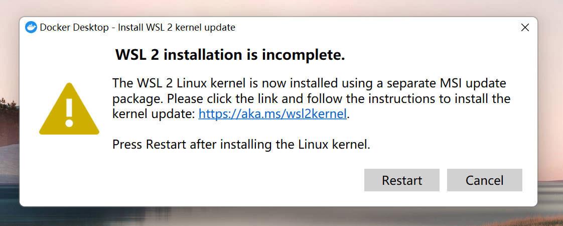 重启系统后,系统提示WSL 2的安装还未完成。于是按照系统提示,点击链接,下载WSL 2内核。